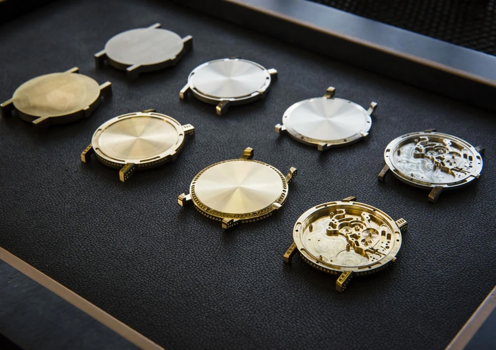 參訪過程中,導覽人員從一小室裡,費力扛出三根長約一公尺的18K黃金、玫瑰金「金條」。「金」自40年代起迄今,向來都是伯爵最常使用的材質,導覽人員舉出多項紀錄,以顯示這座大錶廠內載鍊金爐、寶石鑲嵌與高級珠寶工坊的獨特性:伯爵是少數自設鍊金爐的錶廠,具備處理和熔煉金屑的技術;它還是日內瓦「含金量」最大的地方,製作零部件時,因塑形與切割會失去60%金質,這些貴重「金屑」會融入油脂,或沾染在特殊纖維布上,平均每周有21公斤的金質回收再高溫煉成金磚。