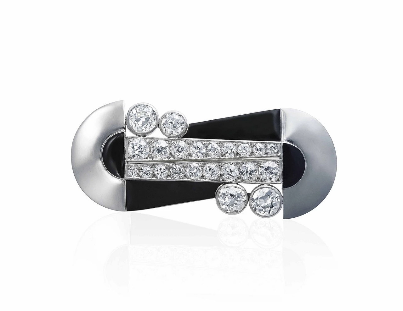 2017佳士得《超越界限:歐洲前衛大師鉅作珍藏》,拍品Lot 103,Art Deco鑽石與黑漆胸針,Raymond Templier,1929年。