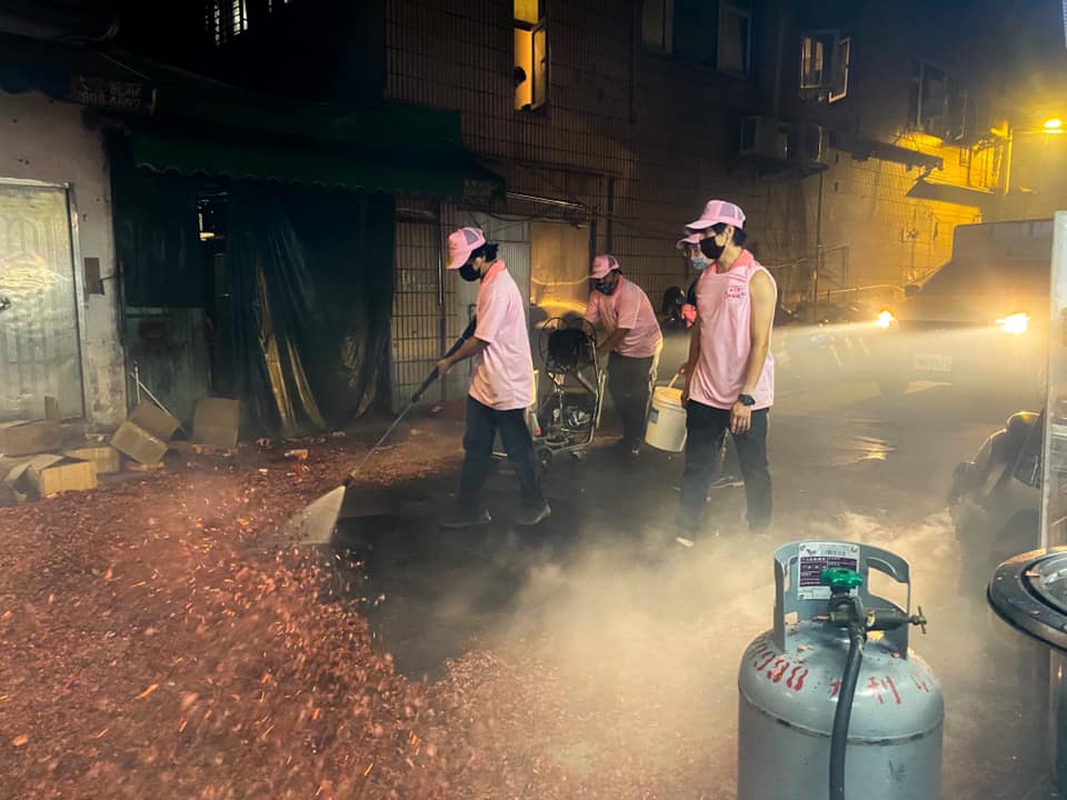 逢疫情遭取消的洗地場次,他們沒有坐以待斃,業務還在擴增,在涼粉伯支持下,啟天宮遶境壓尾陣,清洗鞭炮灰。除了此類「光明友洗」,另一項由前述領班盧拉拉(粉專:盧拉拉特殊清潔記事簿)帶領的「暗黑友洗—裏友洗」,遺屋清整。