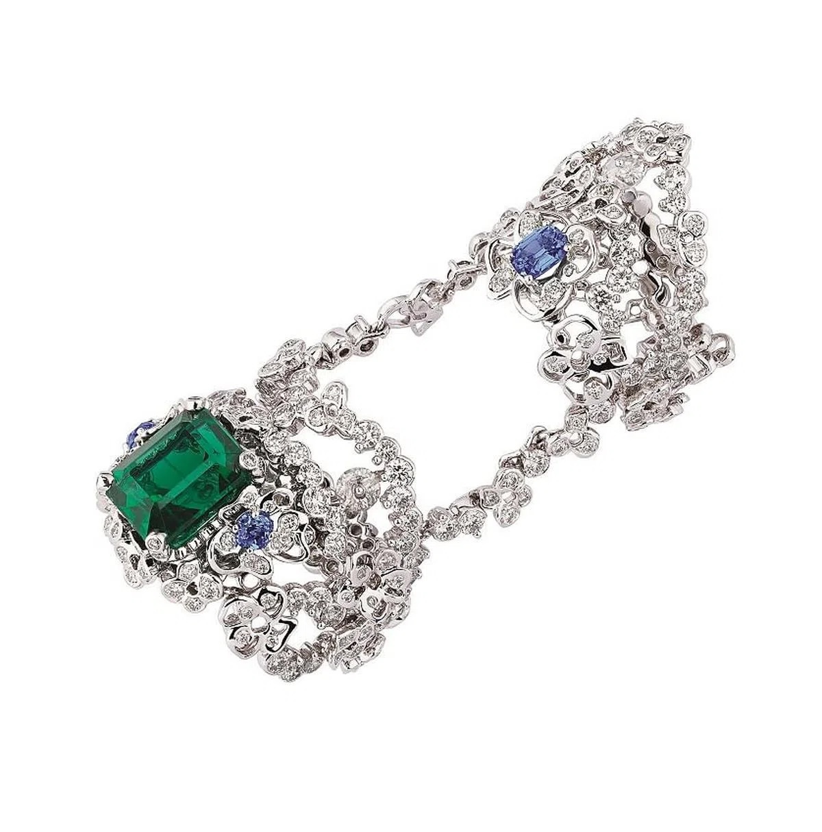全系列作品由15個工坊共製,最微妙之處在於Victoire de Castellane試圖用硬材質(金工、寶石)表現蕾絲與刺繡的軟柔感,這是一則矛盾的命題,她依然玩得十分上手。「這次還設計了幾款頸鍊,頸鍊會像蕾絲般細膩貼膚,非常女人,神祕又性感。」