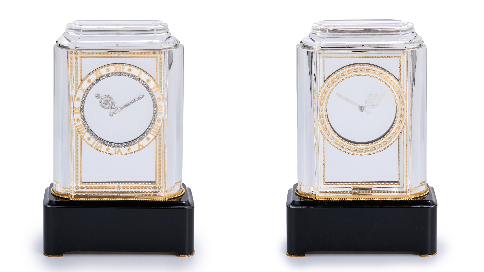 富藝斯鐘錶於2025年5月於日內瓦和香港春拍(名錶薈萃 – 香港 XX),呈現9件製於1900~1940年代、來自同一珍藏的卡地亞Art Deco(裝飾藝術)時期座鐘。其中一件是製於1925年的卡地亞Model A,水晶、珍珠母貝、黃金、縞瑪瑙底座與鑽石鑲嵌,估價200~400萬港元,最後以4,572,000港元(約NT1,850萬)落槌。